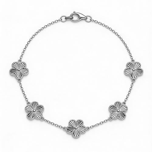 Elevate your jewelry collection with this exquisite bracelet from Adams 925 Silver Jewelry, thoughtfully crafted from authentic 925 sterling silver for lasting brilliance and durability. The bracelet showcases a series of delicate floral-inspired motifs, beautifully alternating between polished silver and deep black accents, creating a refined and sophisticated contrast.