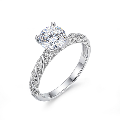 A timeless ring featuring a radiant center stone framed by a delicate halo of shimmering crystals.